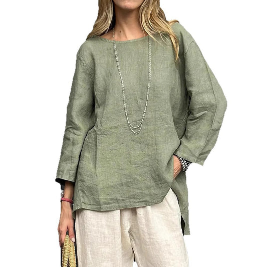 Blouse Vintage en Coton et Lin à Manches Longues